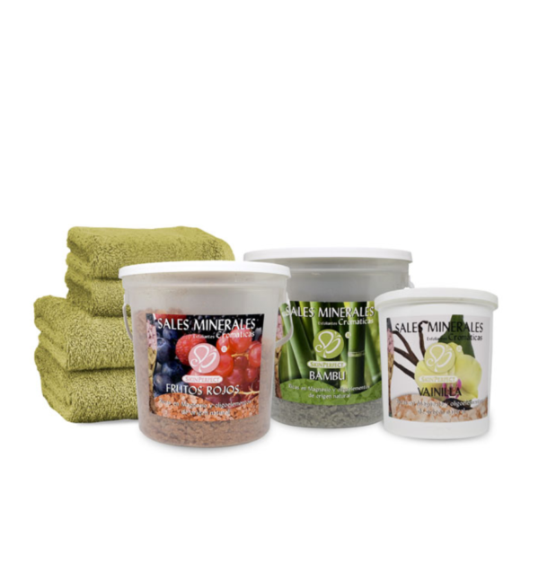 Cristales de Sales Minerales ricas en Magnesio y lodos cromáticos. Sin colorantes artificiales. Remineralizan y desintoxican la piel, gracias a su alto contenido en lodos cromáticos y sales minerales. Para uso en tina o jacuzzi.